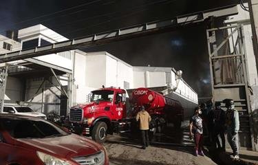 Bomberos llevan más de nueve horas combatiendo incendio en fábrica de Haina