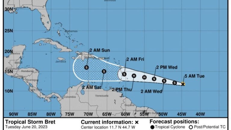 La tormenta tropical Bret continúa fortaleciendo la tarde de este martes en su trayecto hacia las Antillas Menores, de acuerdo al último boletín emitido por el Centro Nacional de Huracanes (NHC, en inglés) con sede en Miami, Estados Unidos. En su boletín de las 5:00…