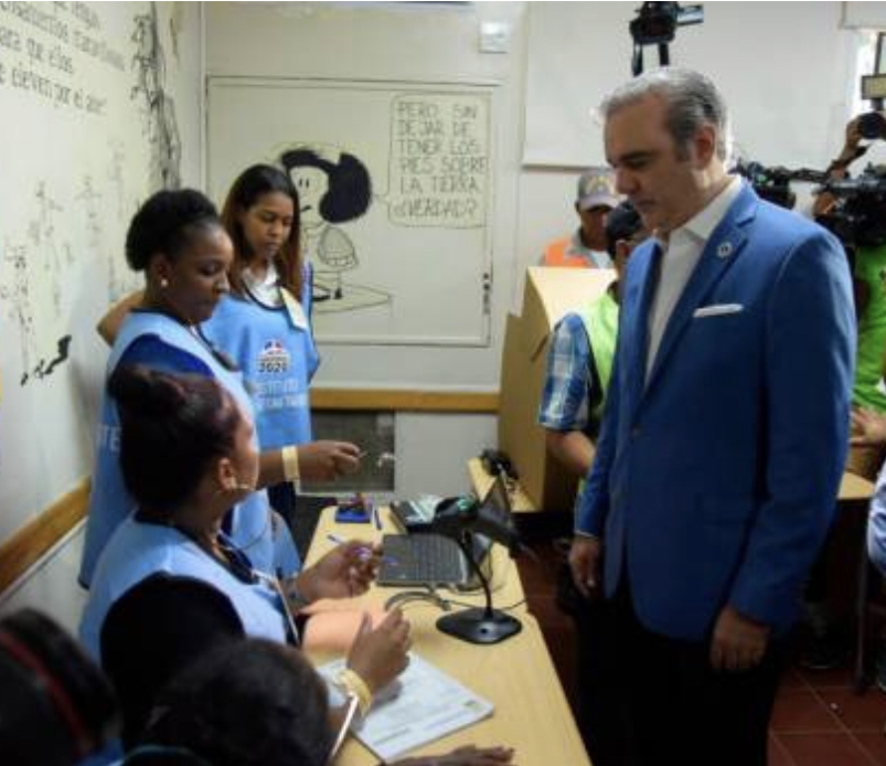 Abinader ejerció su derecho al voto en el recinto electoral número 387, ubicado en la avenida Roberto Pastoriza, ensanche Naco, Distrito Nacional.
